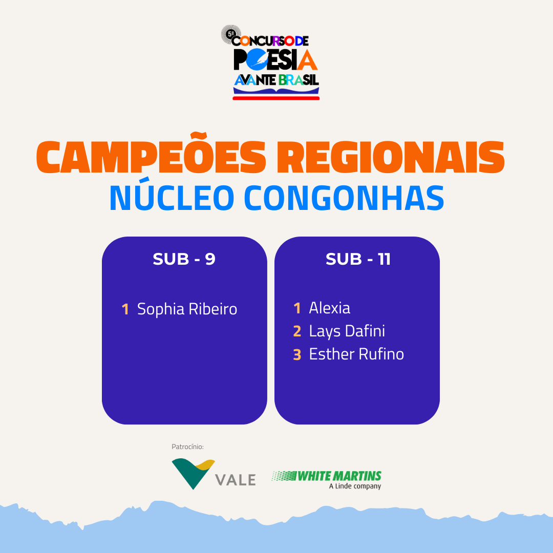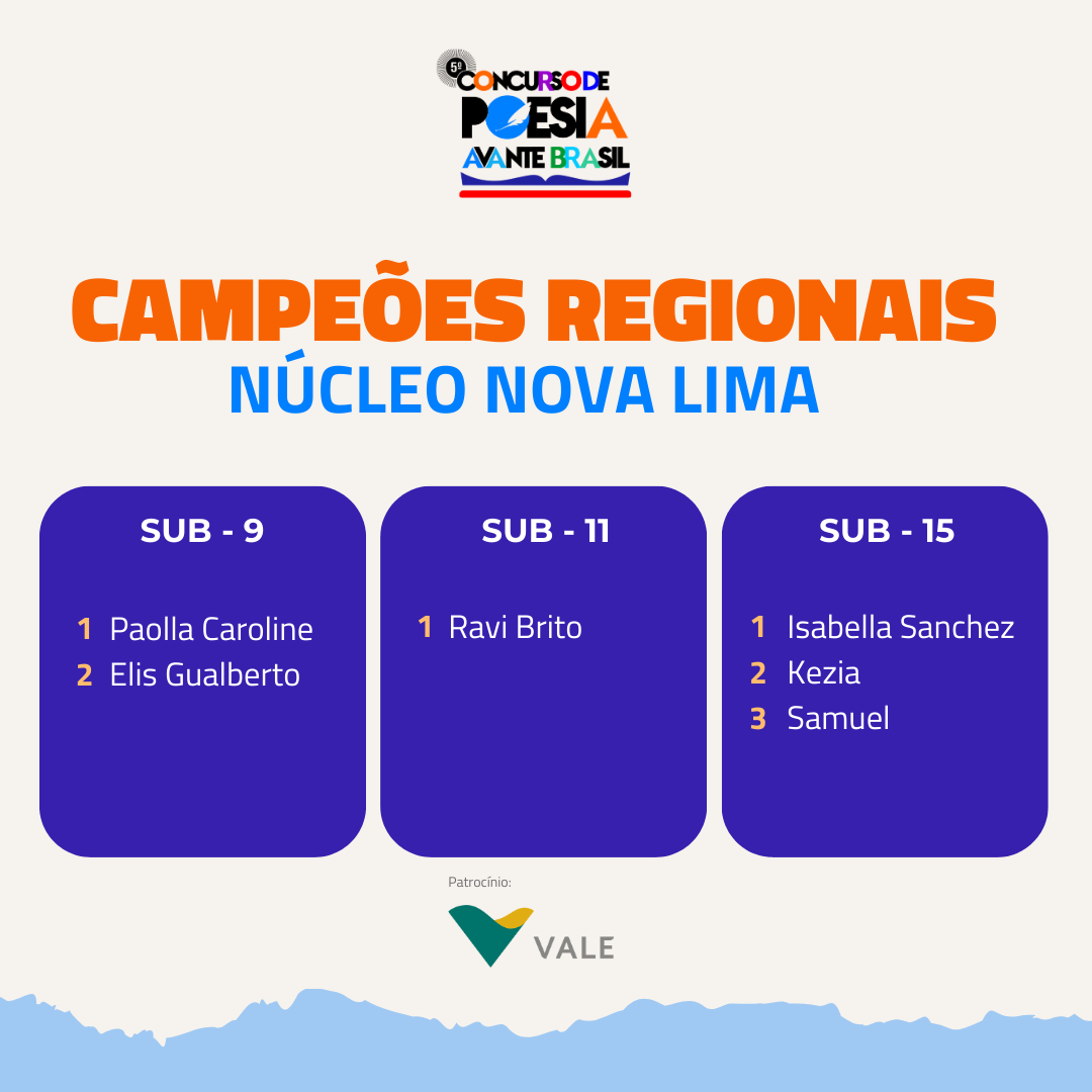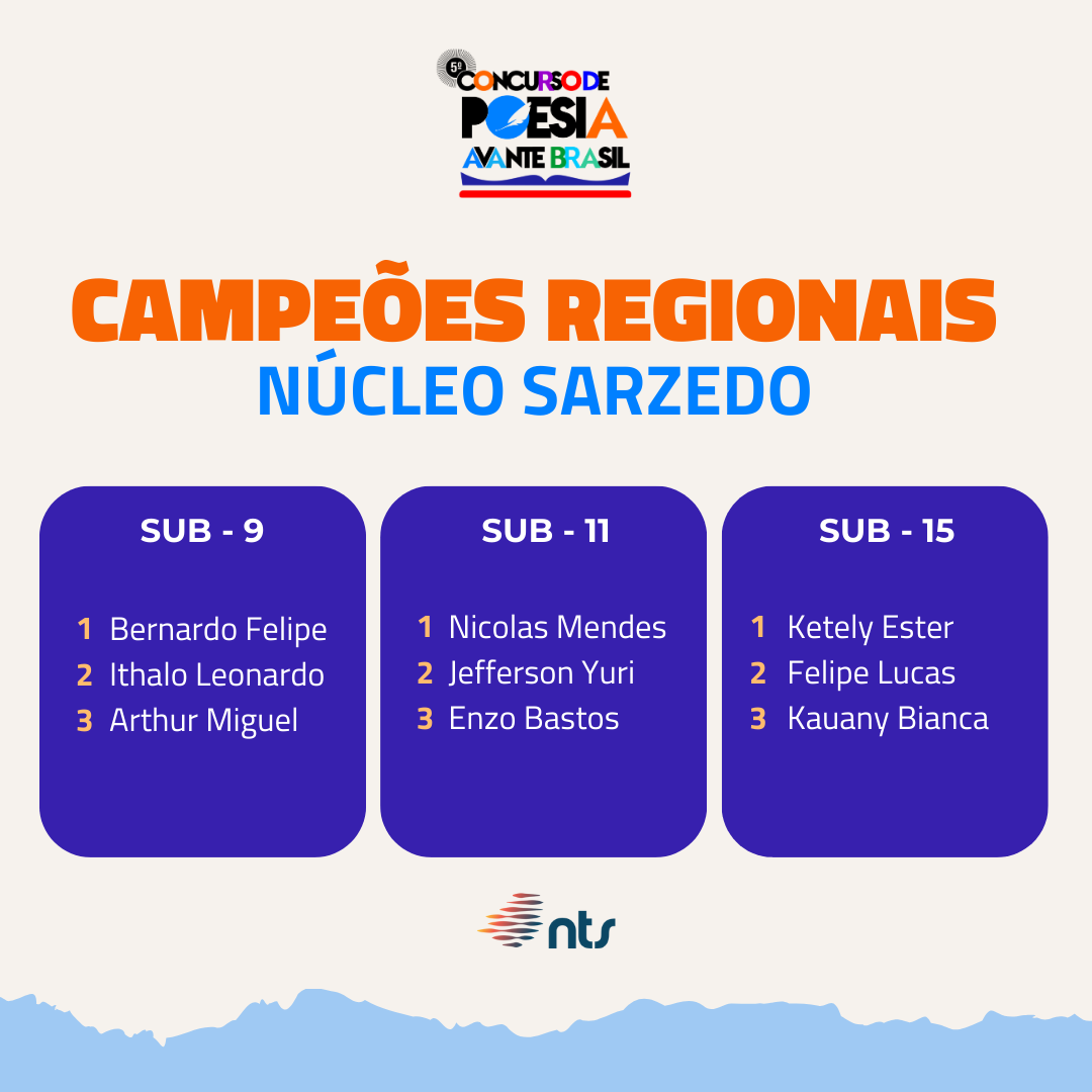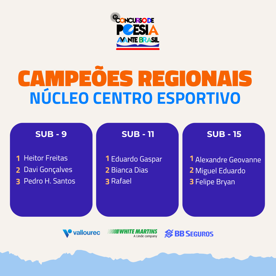 A etapa regional do 5º Concurso de Poesia Avante Brasil terminou no dia 11 de março, com o tema “O esporte como forma de inclusão”, os beneficiários escreveram poesias de no máximo uma lauda. Entre os dias 12 e 14 de março, os professores dos núcleos fizeram uma pré seleção das poesias, escolhendo 5 poesias de cada categoria (sub-9, sub-11 e sub-15). Após essa seleção, no dia 18 de março as poesias foram enviadas para um banca avaliadora, que escolheu os três primeiros colocados de cada núcleo, assim montando o pódio regional.