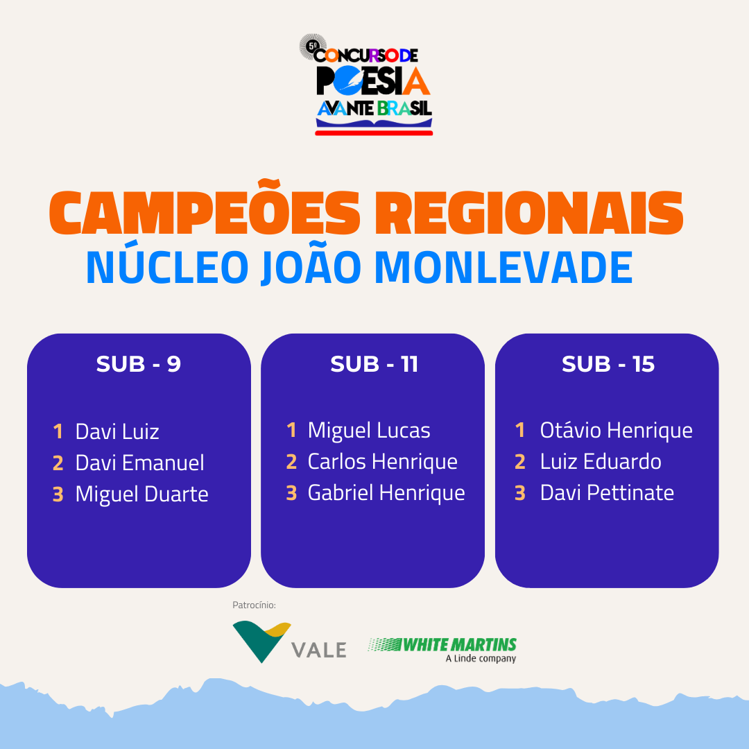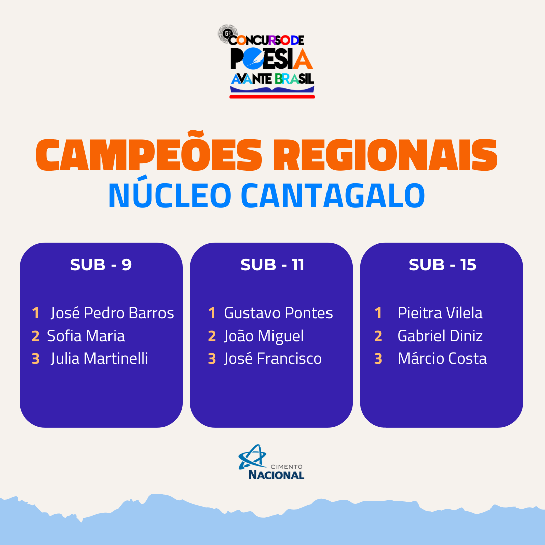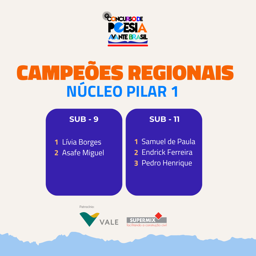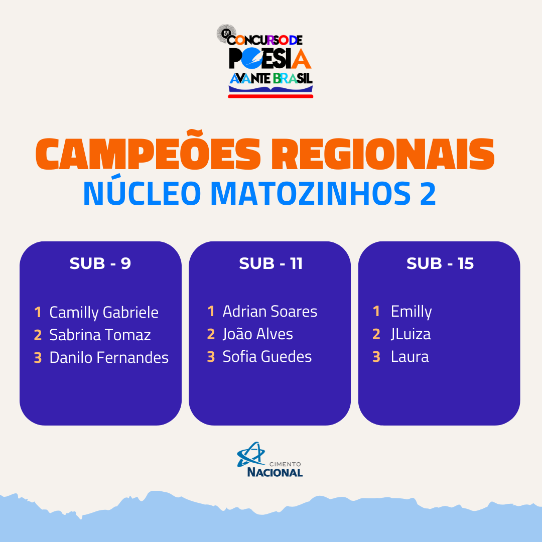 A etapa regional do 5º Concurso de Poesia Avante Brasil terminou no dia 11 de março, com o tema “O esporte como forma de inclusão”, os beneficiários escreveram poesias de no máximo uma lauda. Entre os dias 12 e 14 de março, os professores dos núcleos fizeram uma pré seleção das poesias, escolhendo 5 poesias de cada categoria (sub-9, sub-11 e sub-15). Após essa seleção, no dia 18 de março as poesias foram enviadas para um banca avaliadora, que escolheu os três primeiros colocados de cada núcleo, assim montando o pódio regional.