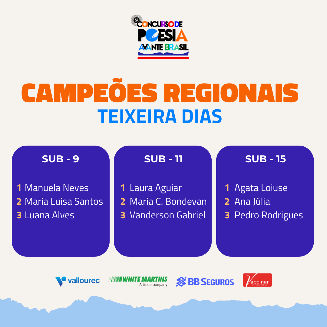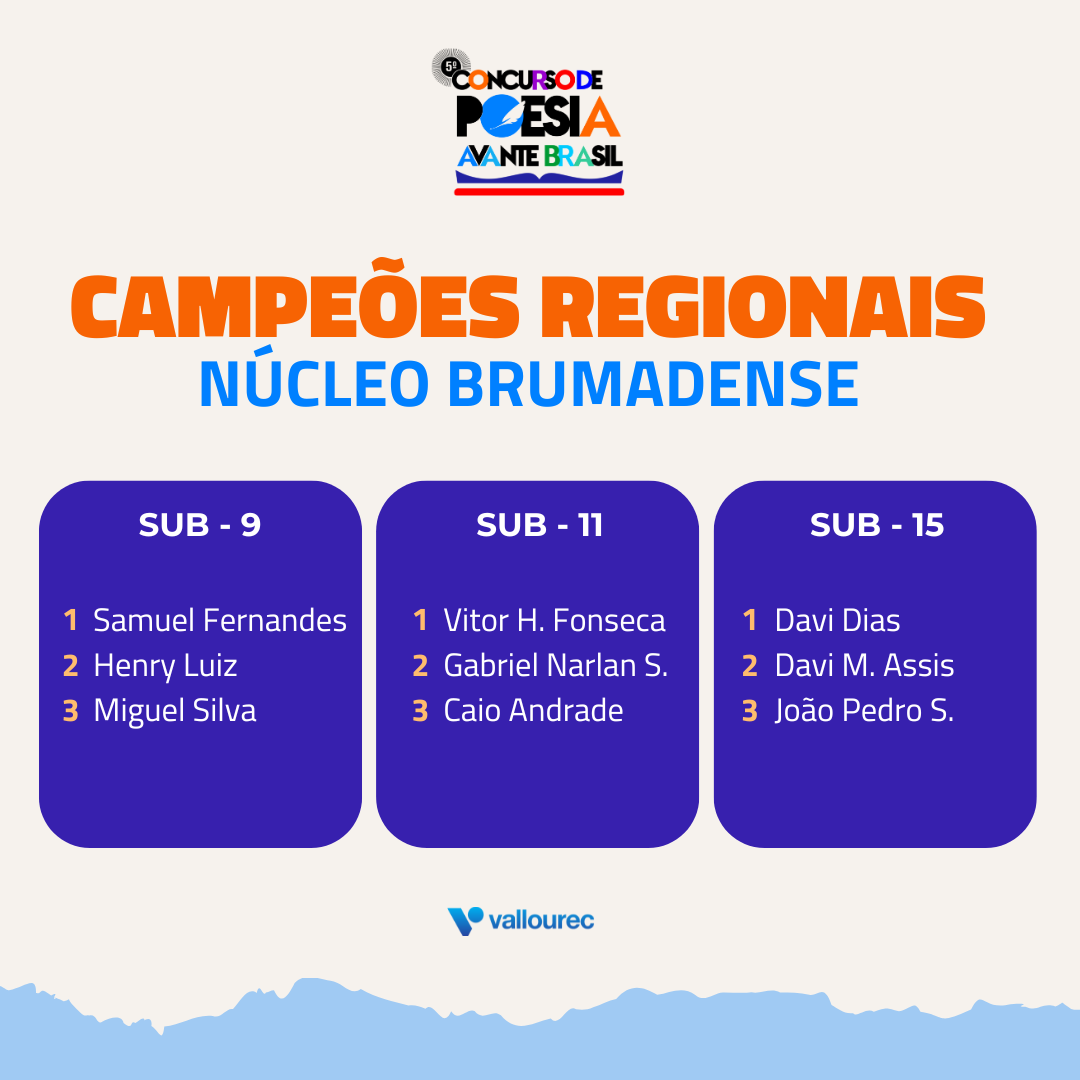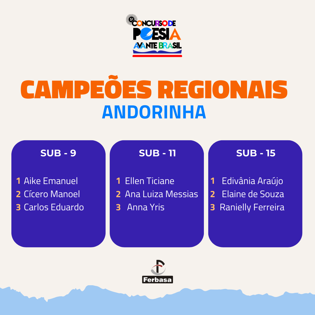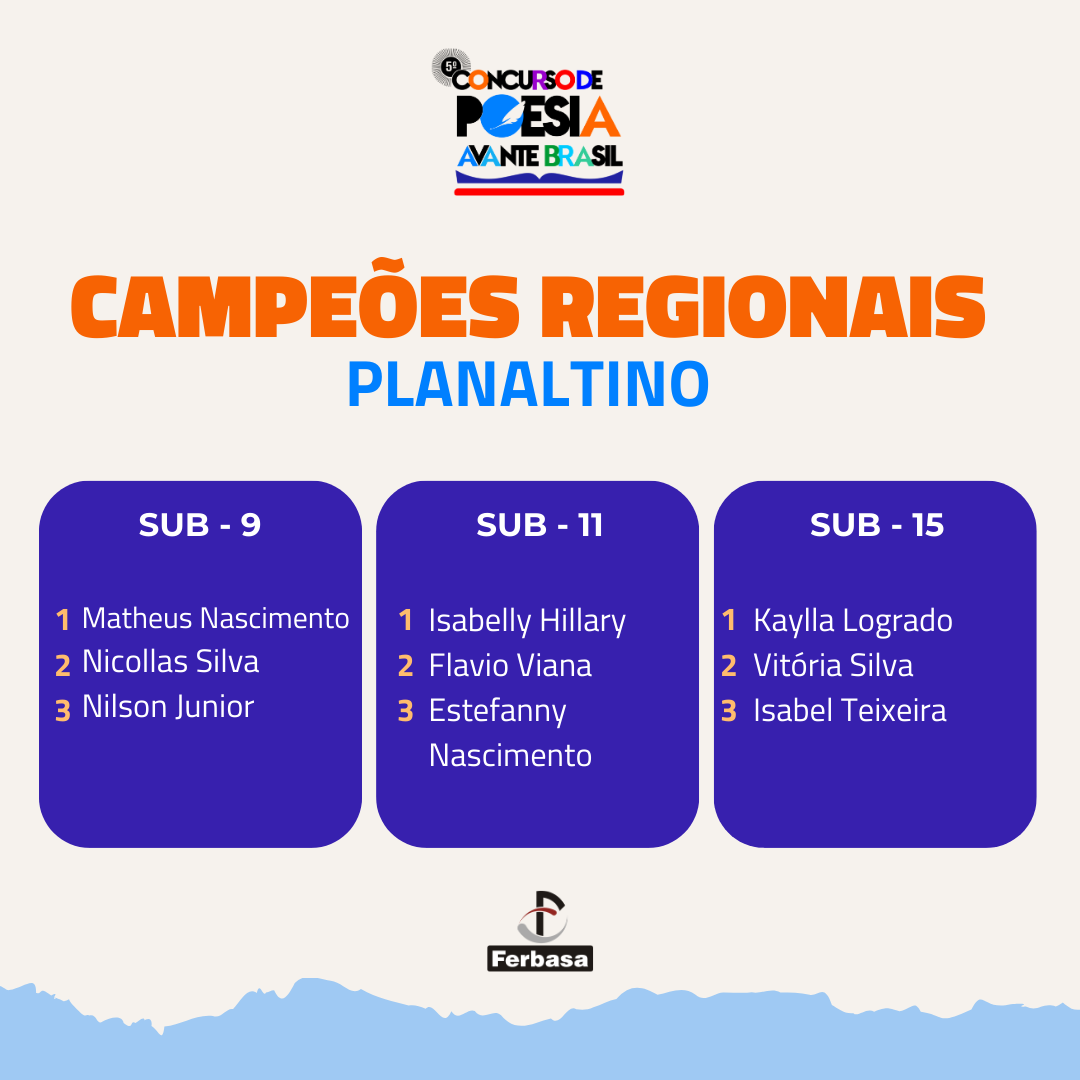 A etapa regional do 5º Concurso de Poesia Avante Brasil terminou no dia 11 de março, com o tema “O esporte como forma de inclusão”, os beneficiários escreveram poesias de no máximo uma lauda. Entre os dias 12 e 14 de março, os professores dos núcleos fizeram uma pré seleção das poesias, escolhendo 5 poesias de cada categoria (sub-9, sub-11 e sub-15). Após essa seleção, no dia 18 de março as poesias foram enviadas para um banca avaliadora, que escolheu os três primeiros colocados de cada núcleo, assim montando o pódio regional.
