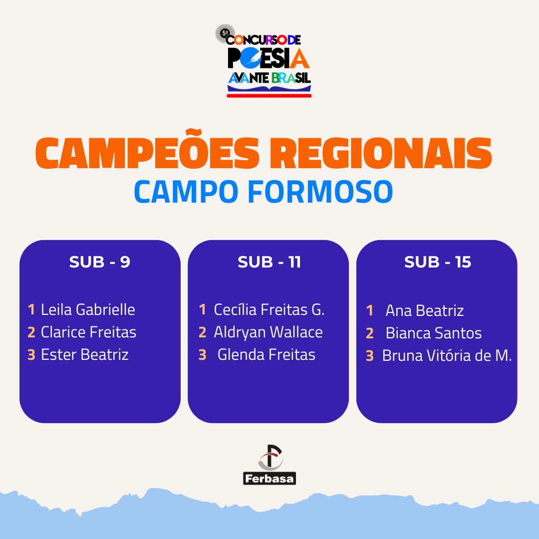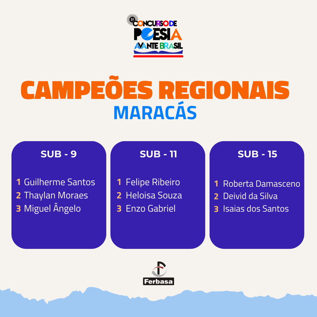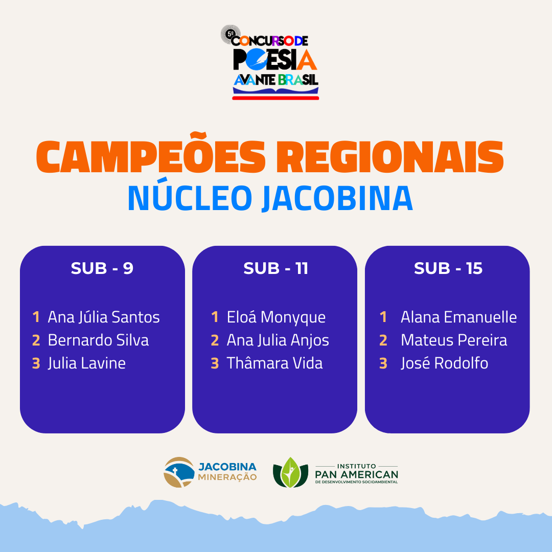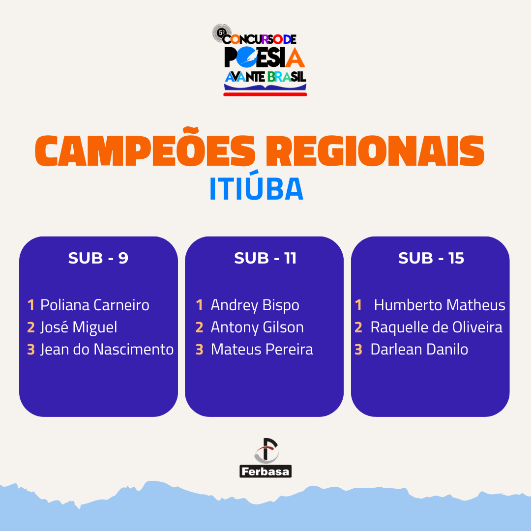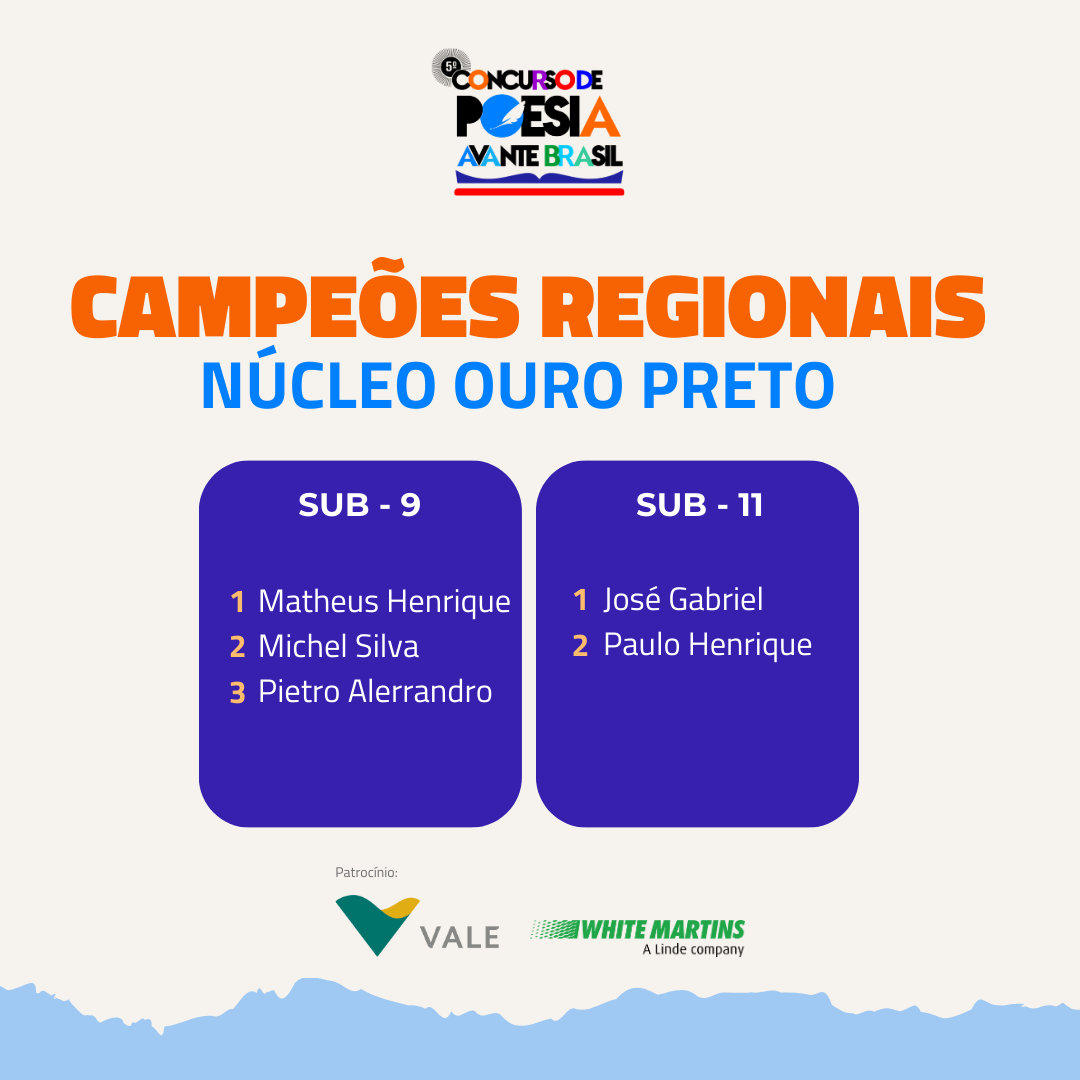A etapa regional do 5º Concurso de Poesia Avante Brasil terminou no dia 11 de março, com o tema “O esporte como forma de inclusão”, os beneficiários escreveram poesias de no máximo uma lauda. Entre os dias 12 e 14 de março, os professores dos núcleos fizeram uma pré seleção das poesias, escolhendo 5 poesias de cada categoria (sub-9, sub-11 e sub-15). Após essa seleção, no dia 18 de março as poesias foram enviadas para um banca avaliadora, que escolheu os três primeiros colocados de cada núcleo, assim montando o pódio regional.