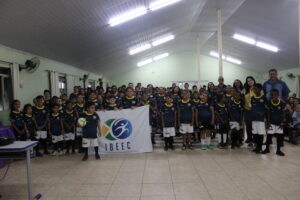 Os beneficiários do núcleo Sarzedo do Instituto Brasileiro de Excelência no Esporte & Cultura (IBEEC) receberam os novos uniformes e novo material esportivo na