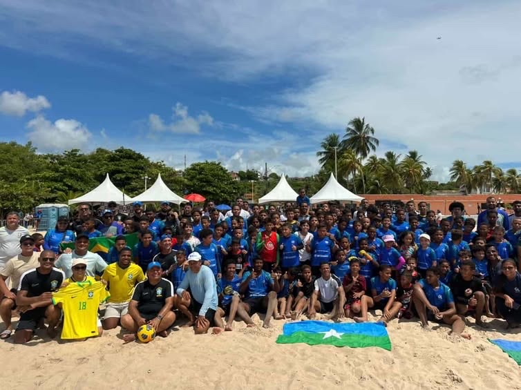 A cidade recebeu a visita especial da Seleção Brasileira de Beach Soccer, que realizou um treino aberto ao público e promoveu uma clínica esportiva voltada para as crianças e adolescentes do projeto.